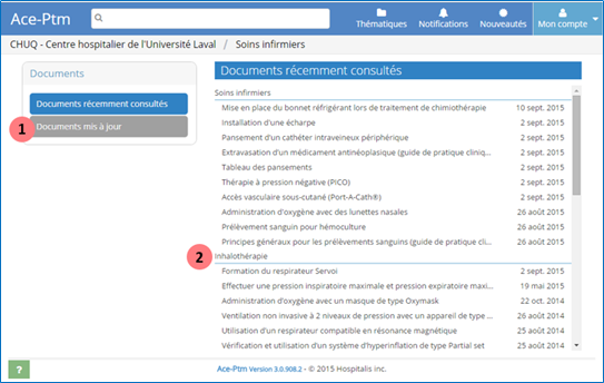 - Documents récemment consultés: Les documents récemment consultés par l’utilisateur.