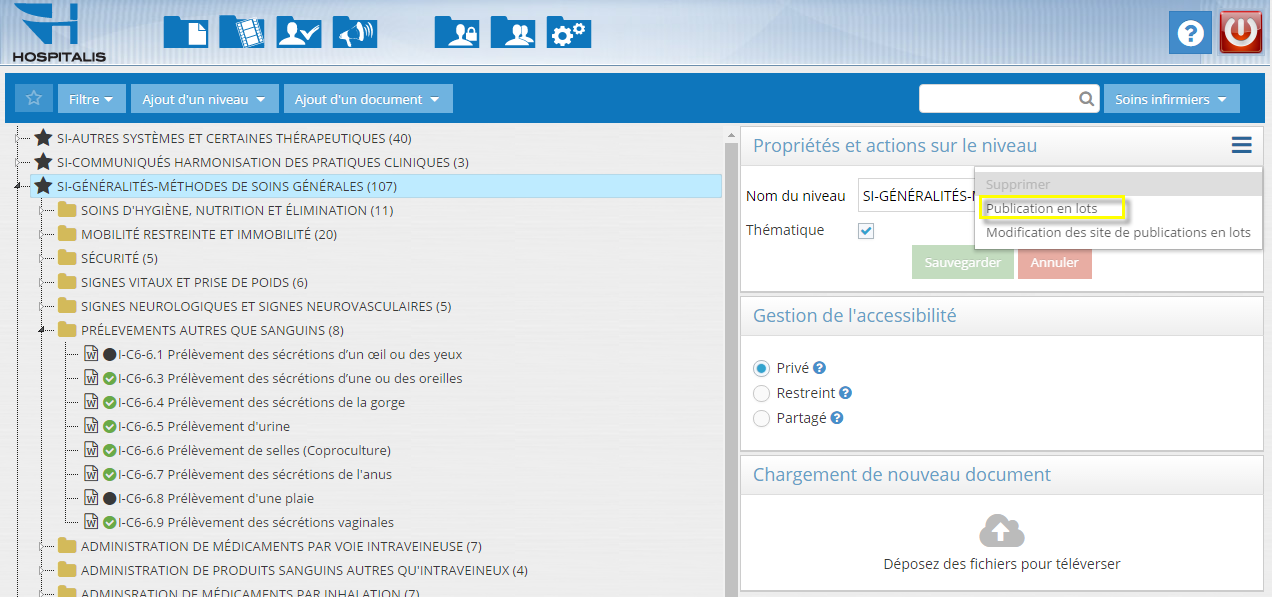 Il est possible d'effectuer une publication de plusieurs documents simultanément à l'aide de la fonctionnalité Publication en lot. Il possible de publier en lot les documents provenant d'une thématique ou d'un dossier.