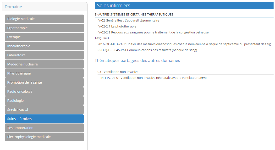 • Seuls les domaines auxquels l’utilisateur a accès sont affichés.