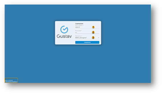 Le Logiciel Gustav est accessible via une icône bureau ou un lien sécurisé. Ces éléments ainsi que les informations d’authentification sont fournis par le service informatique de votre établissement.