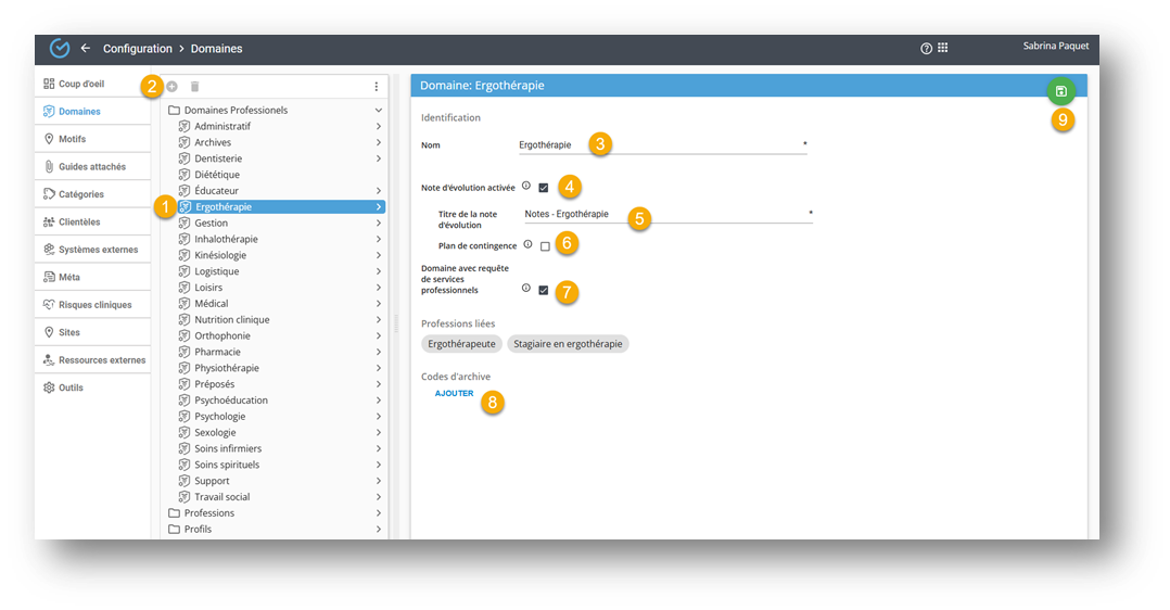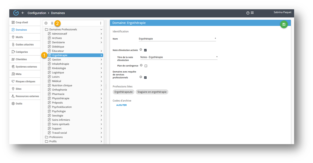 - Cocher si le domaine professionnel est requis dans le processus d’une requête professionnelle (voir section Requête professionnelle)
