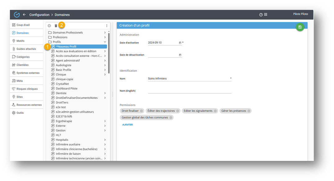 Le Profil regroupe un ensemble de permissions données à une profession.