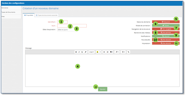 - Date d’expiration: Délai attribué au domaine pour l’expiration des documents.