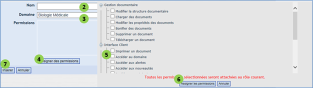 Note : Les étapes de 3 à 7 seront à répéter pour chaque domaine à associer au rôle.