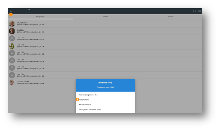 L’auto-assignassion est disponible à la première connexion du quart de travail