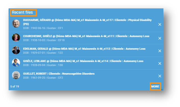 This tile displays the last five (5) files accessed by the user. Selecting "MORE" provides access to a larger list of files. The tile will be empty upon the user’s first login.