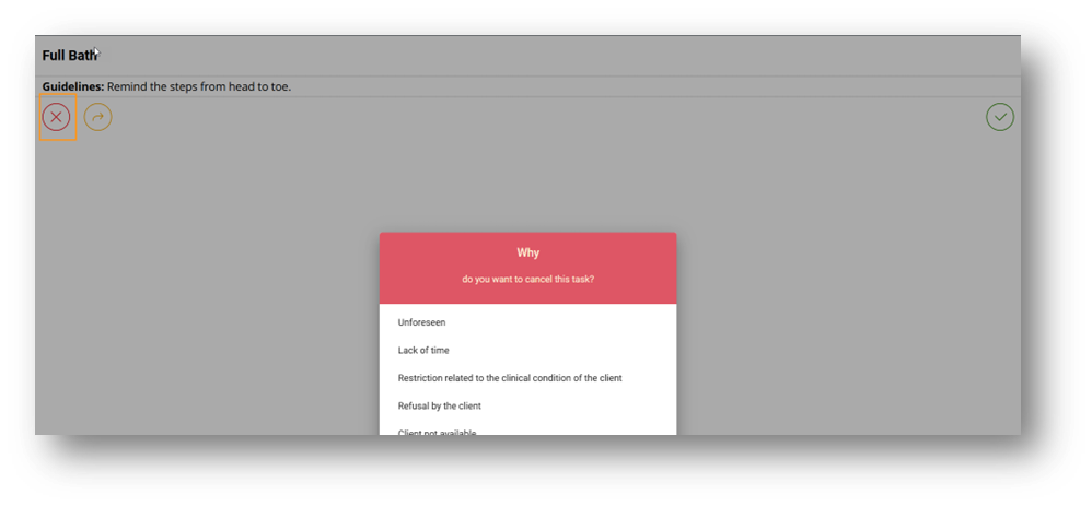 Not completed or report activity requires selecting a reason and it will be reported in the inter-shift report.