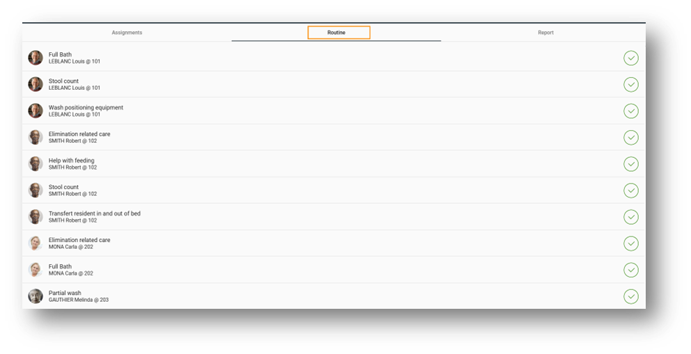 - Activities for all users in your assignment (e.g., partial hygiene care)