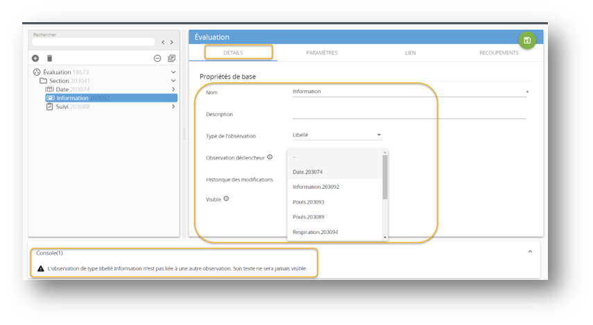 - L’observation déclencheur doit contenir une saisie pour que le libellé s’affiche.