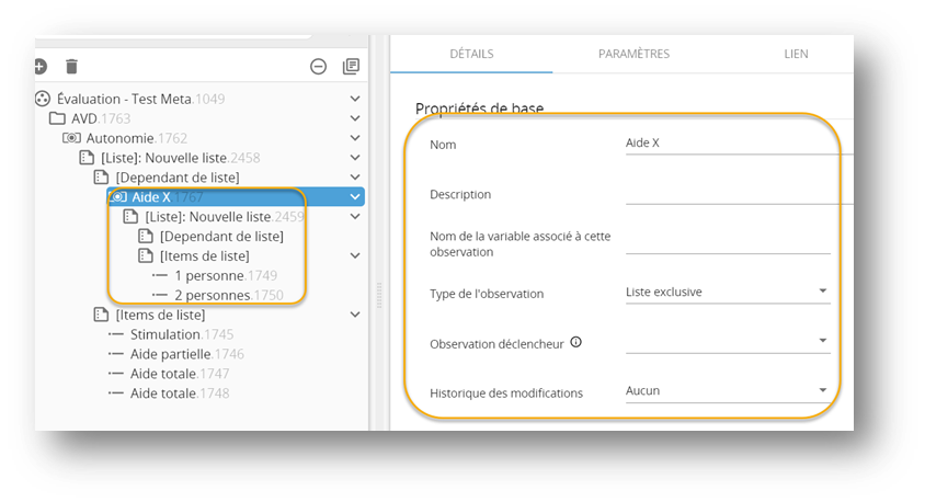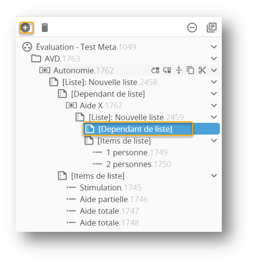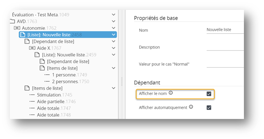 Les dépendants de liste (texte, nombre, durée et liste) sont des sous choix.