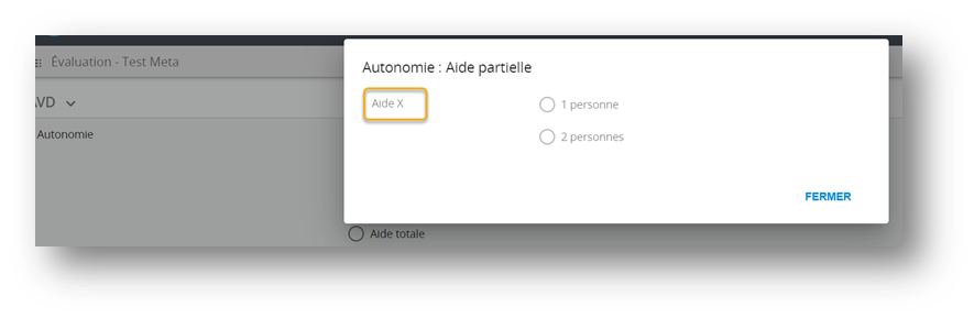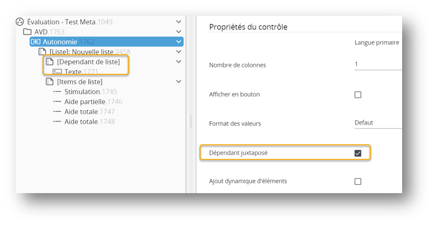 Les dépendants de liste peuvent être juxtaposé à la liste. Par exemple un champ texte permettra de bonifier la valeur sélectionnée.