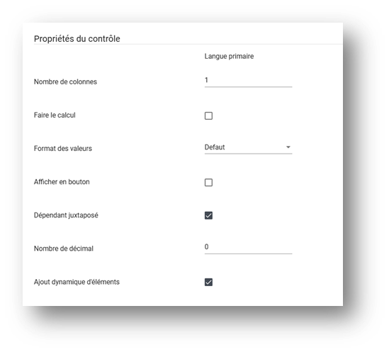 - Dépendant juxtaposé : permet l’ajout de champ texte à côté de la sélection