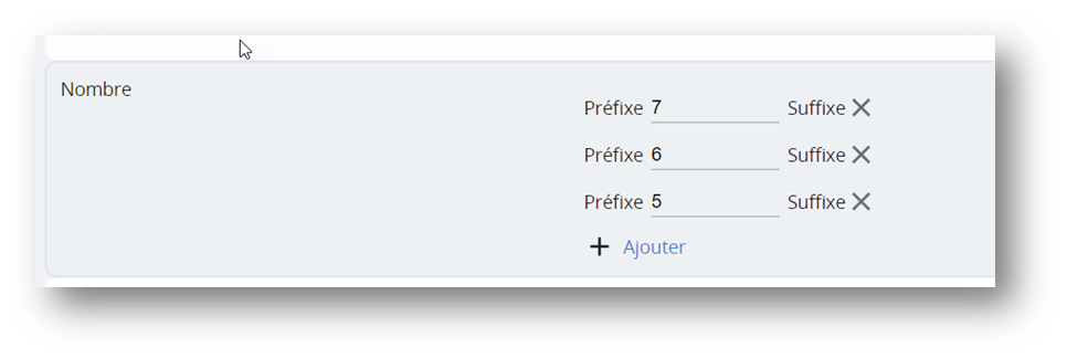 - Préfixe / Suffixe : s’affiche avant et après la valeur saisie