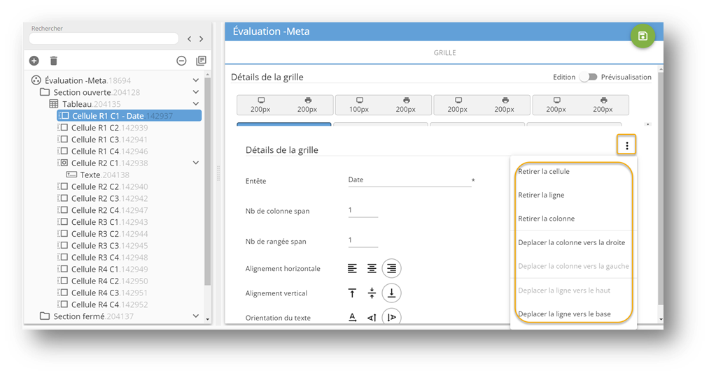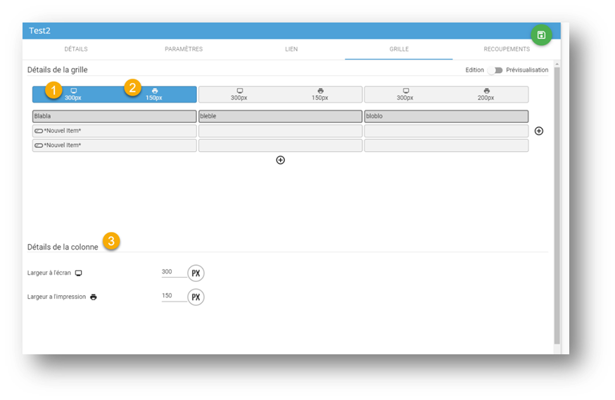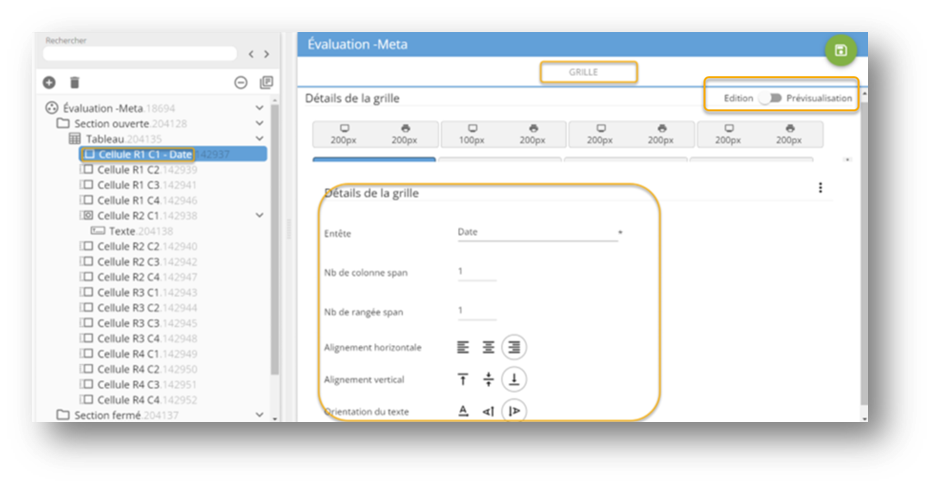 Édition-prévisualisation : Lorsqu’activé, il permet d’avoir un aperçu du tableau dans la vue de l’utilisateur.