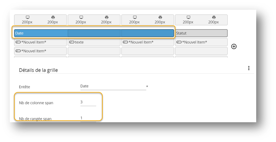 - Nb de colonne et de rangée span : nombres cellules fusionnées