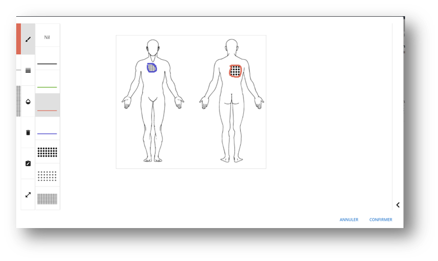 Sélection à partir des menus déroulants de la couleur(traits) et du type de remplissage qui sera prédéfinis pour l’utilisateur lorsqu’il initiera le dessin.