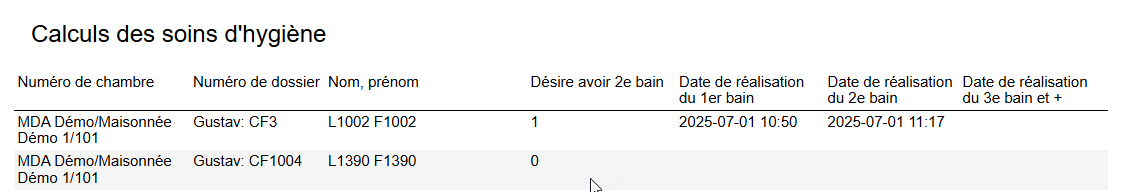 La date de réalisation des bains est générée par la complétion de l'activité du plan de soins.