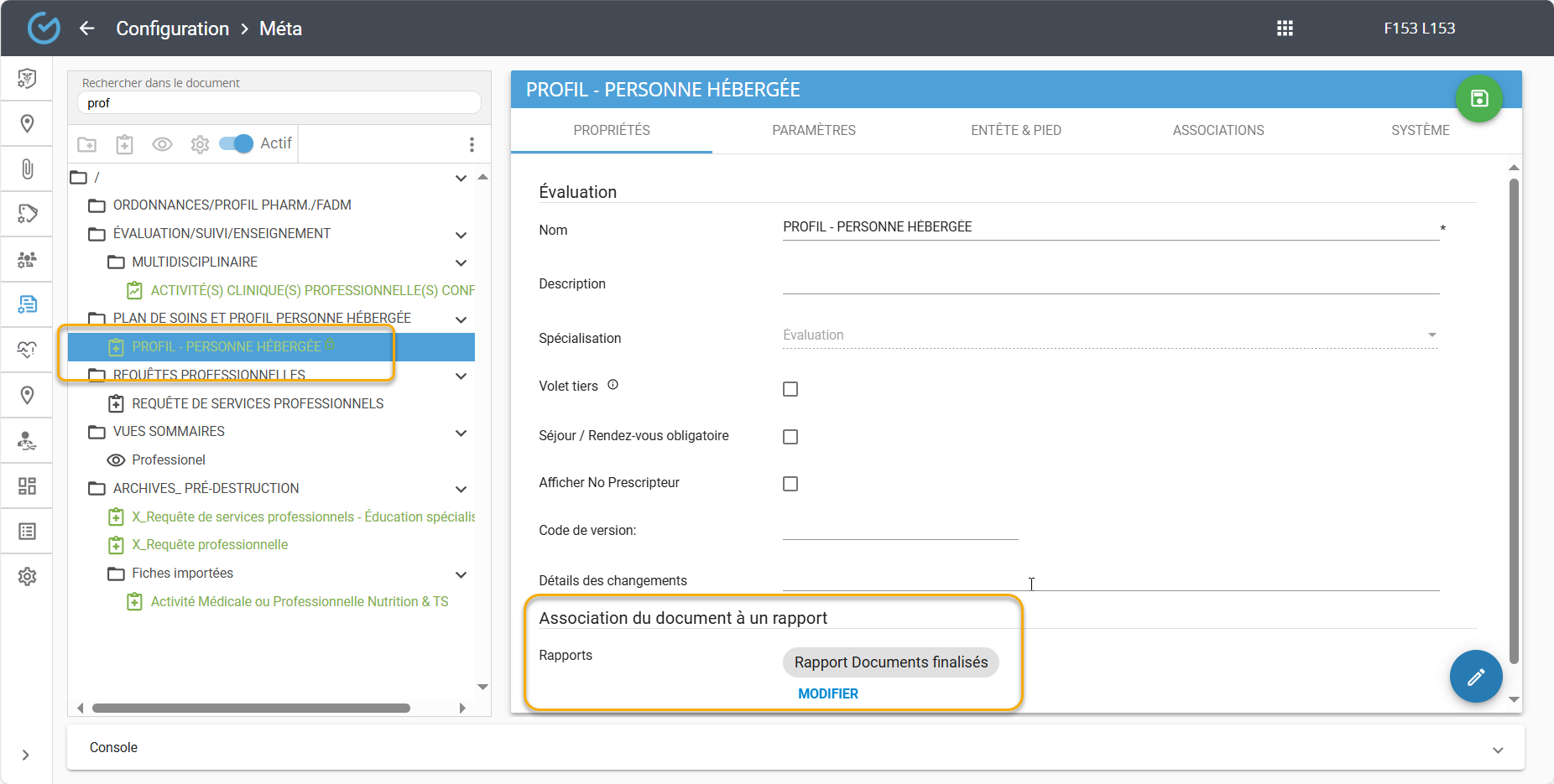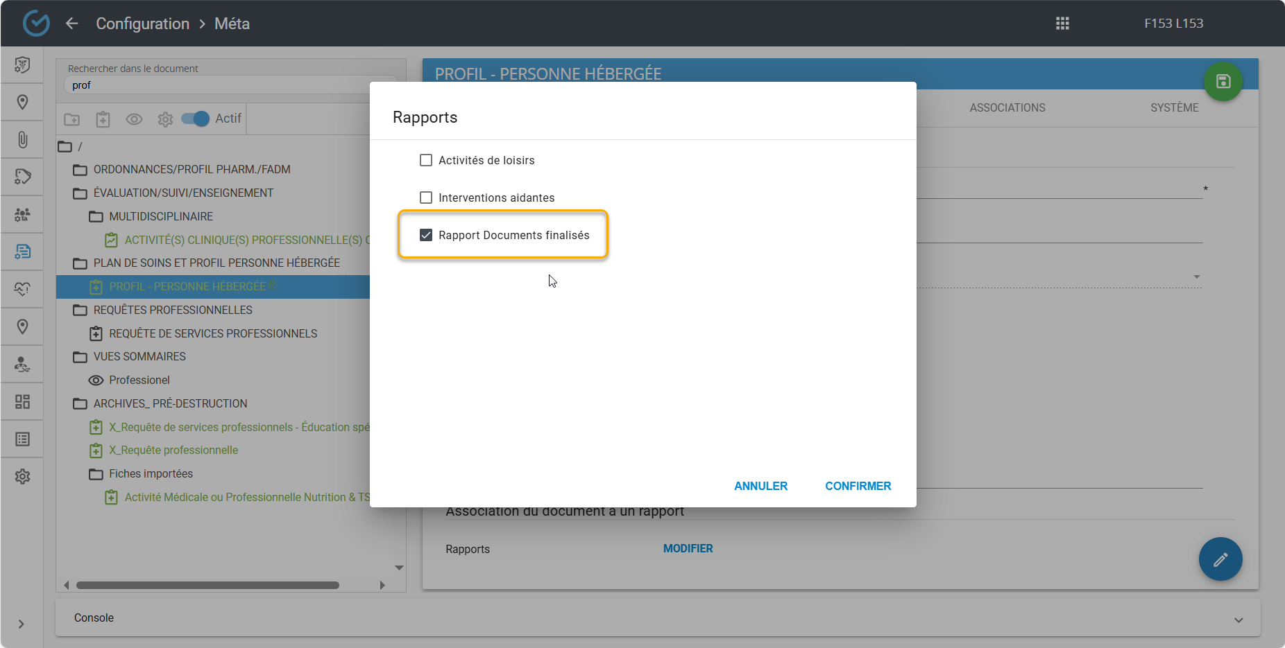 Le formulaire doit être associé au rapport ''Documents finalisés'':