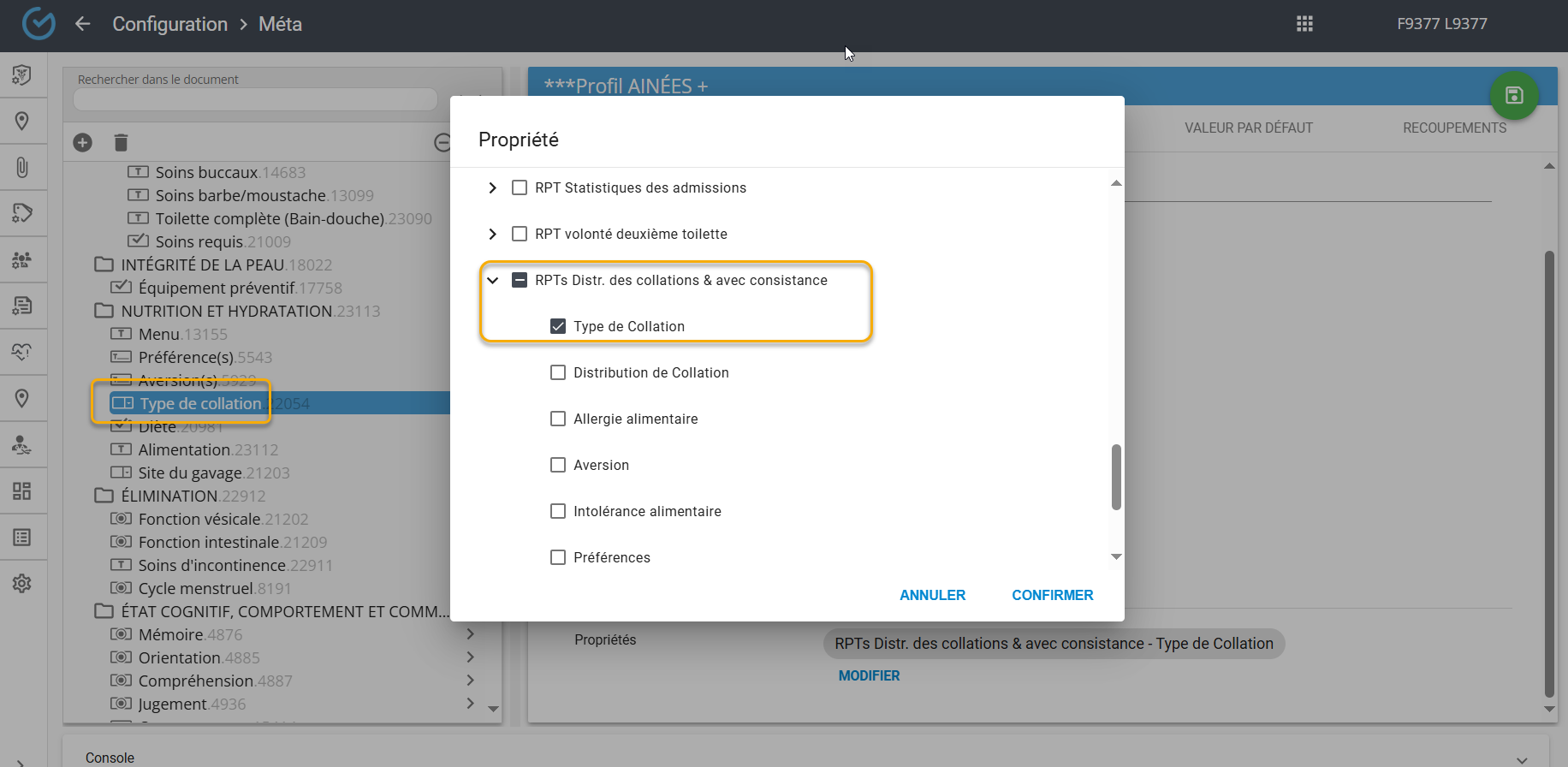 Chacune de ces observations doivent être associées à la propriété correspondante. Par exemple, l'observation ''type de collation'' doit être associée à la propriété ''Type de collation'' de ce rapport: