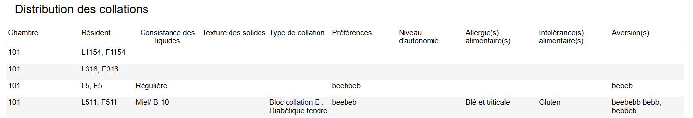 - Intolérance alimentaire : Liste déroulante, Liste exclusive, Liste inclusive, Texte