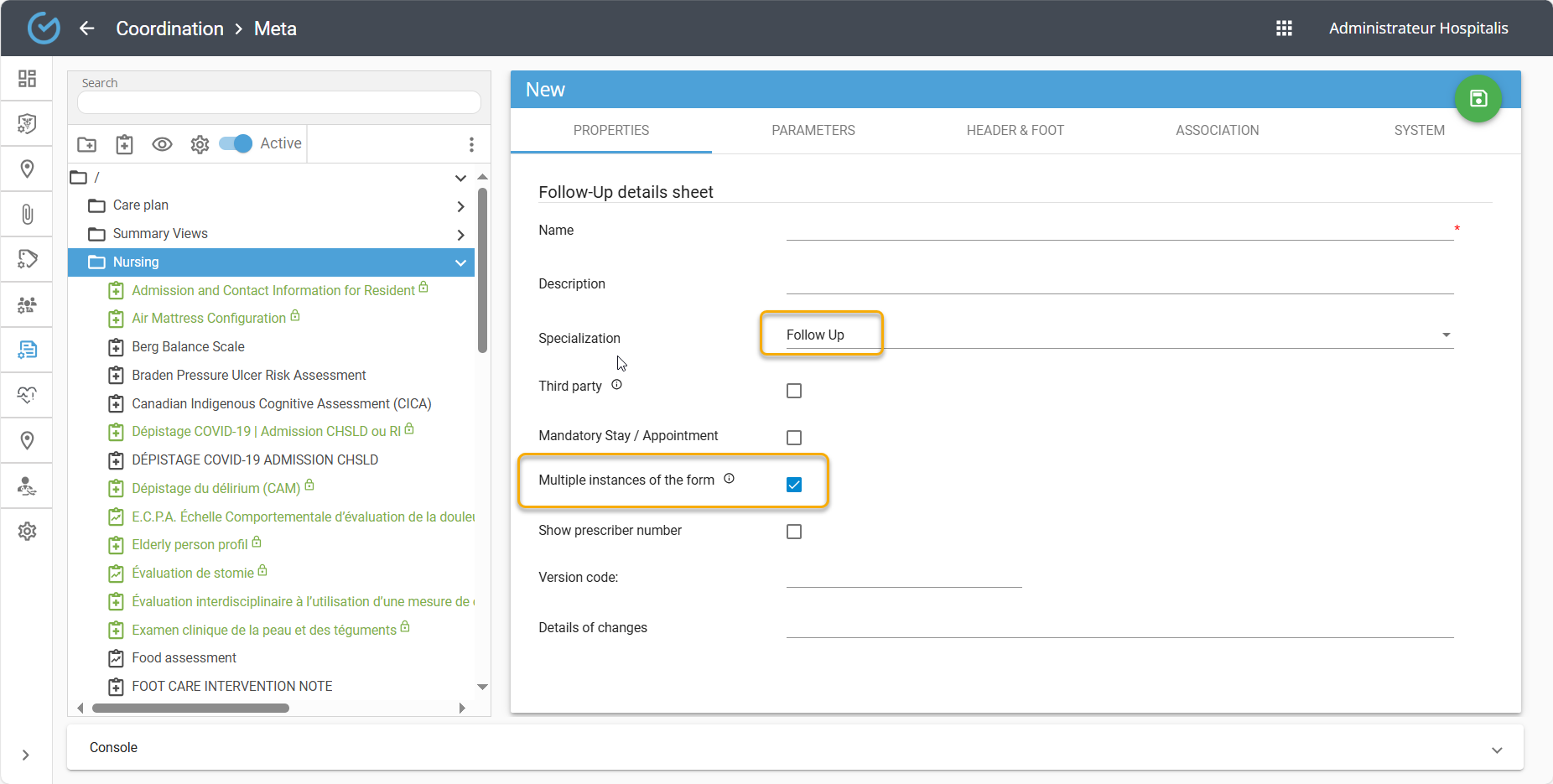 For a follow-up grid type form, it is possible to configure it so that the user can create multiple instances of the same document. For example, a post-fall grid (if a patient requires more than one fall follow-up during a given period):