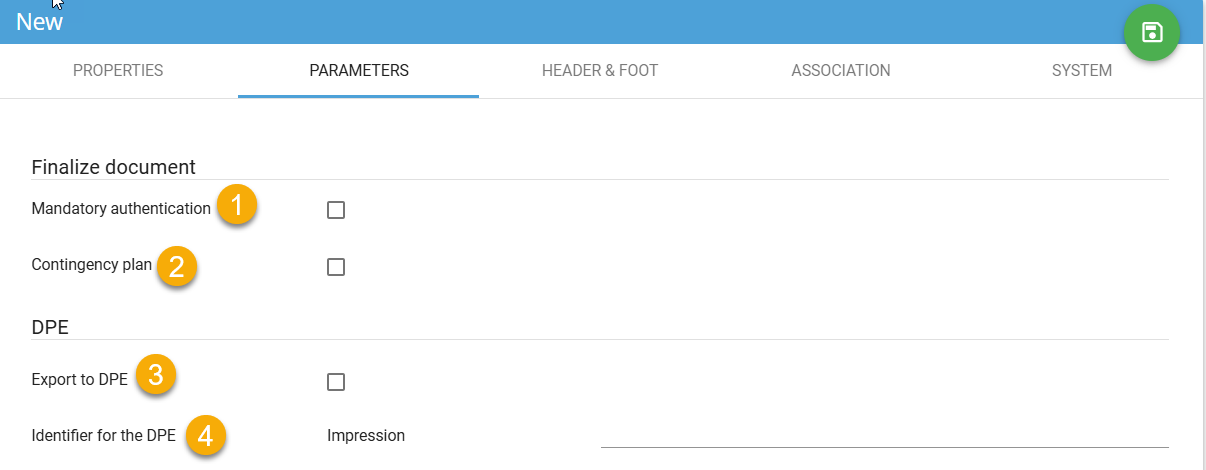 Export to DPE: If checked, the finalized document will be uploaded to the EPR system (if applicable).