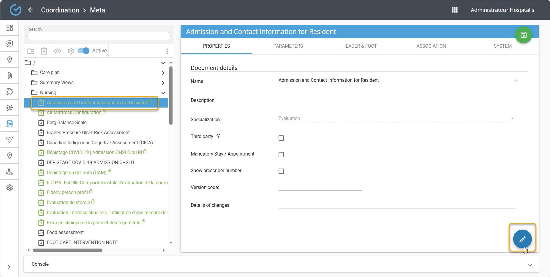 To create or modify the document, select the document and click on the blue pencil icon at the bottom right: