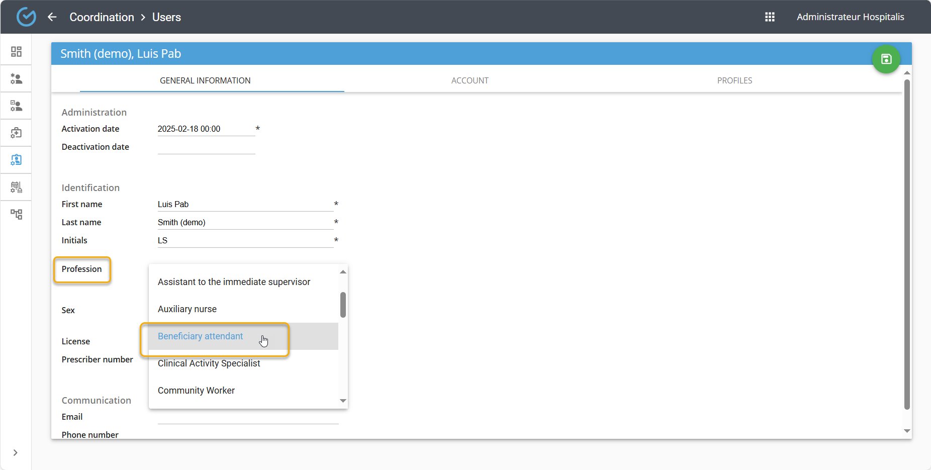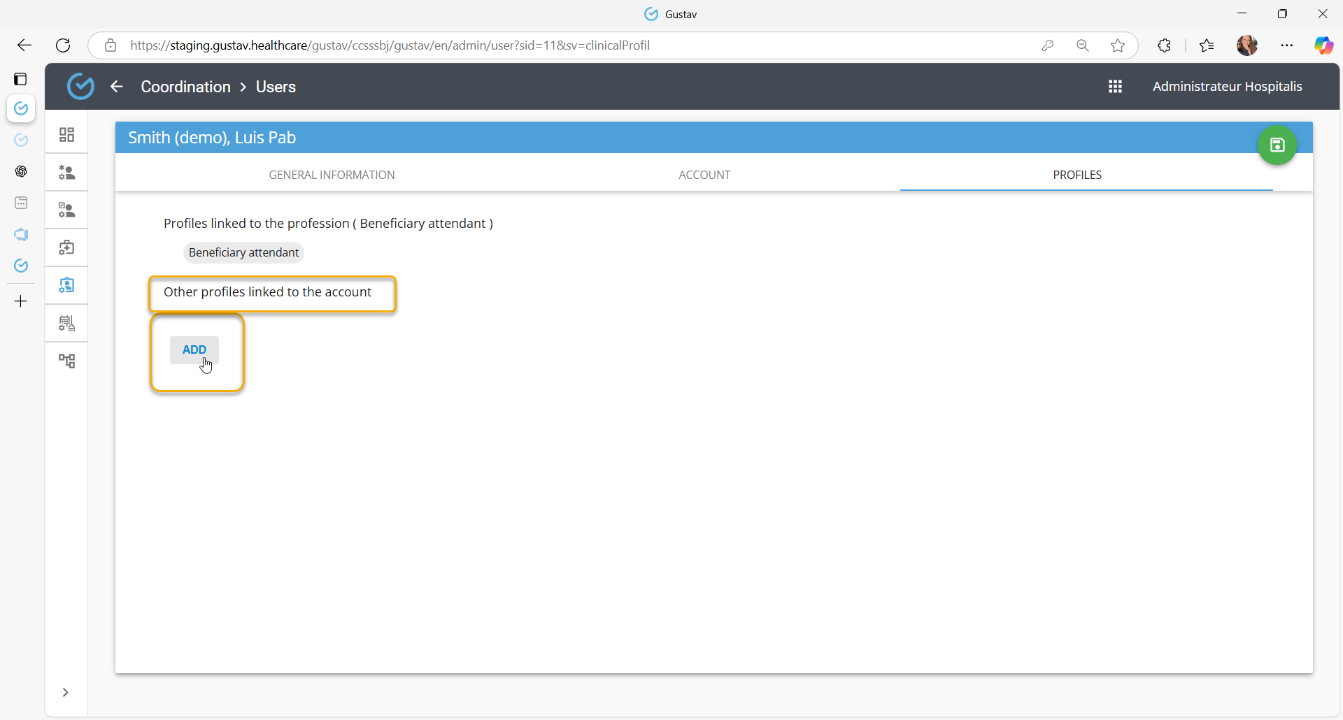 The profile associated with the user is the one linked to their profession. It is also possible to add an additional profile to the user: