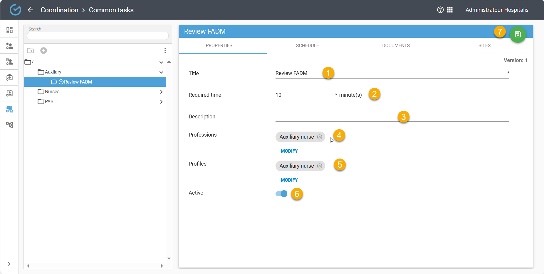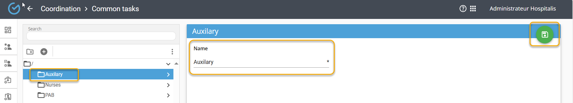Select the profile of the relevant profession and, if necessary, add the profiles of other professions that could also perform the task if needed (e.g., the task will be done by the PAB but the auxiliary nurse could also do it if needed)