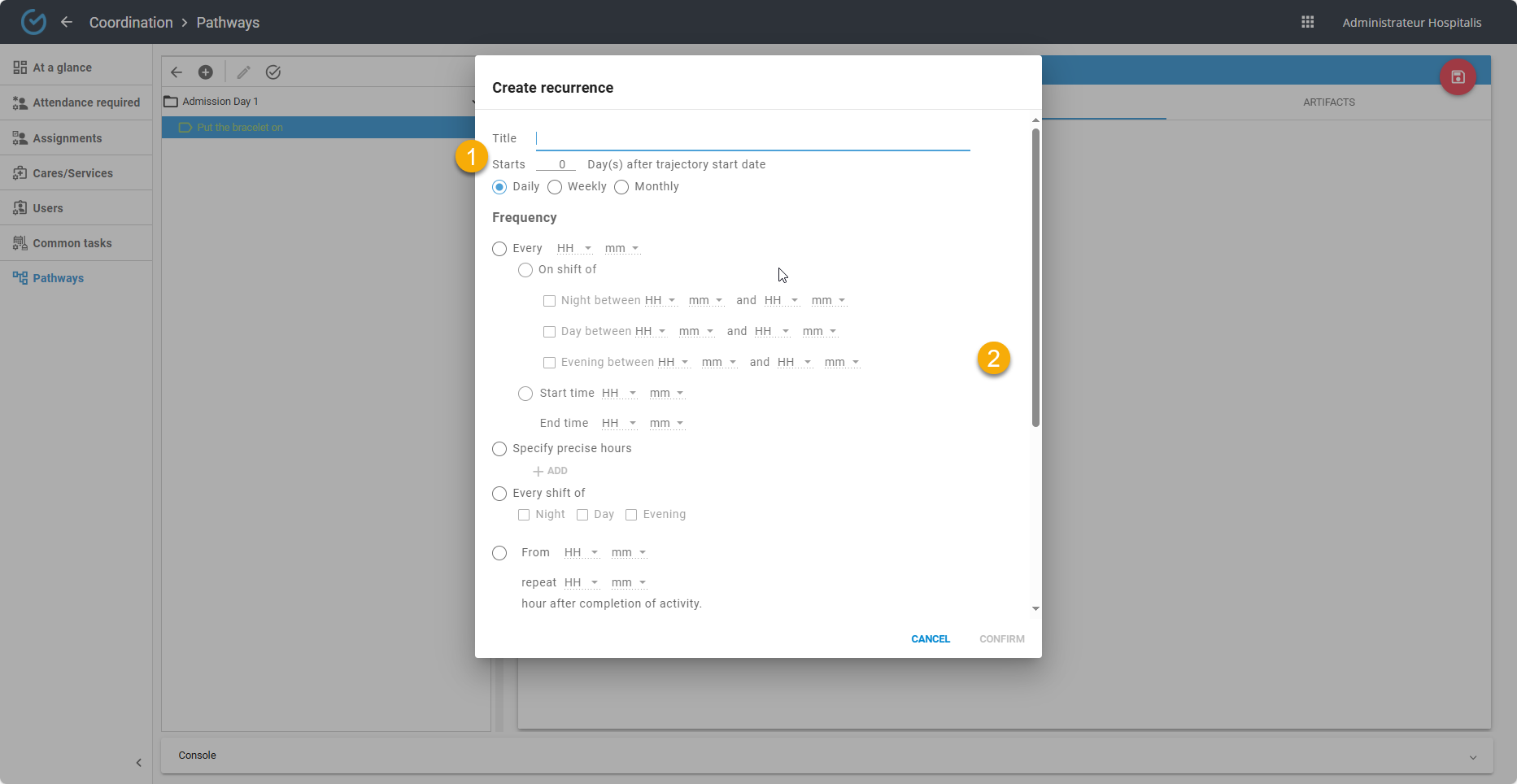 The Pathways component is a feature that allows for the configuration of various clinical activities to be carried out as part of a user's care. These activities are displayed in the user's coordination.