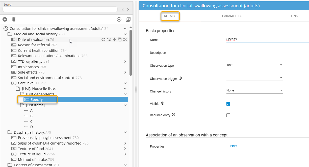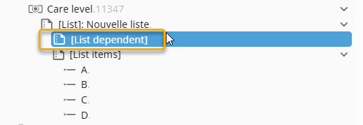 List dependents (text, number, duration, and list) are sub-choices linked to list items.