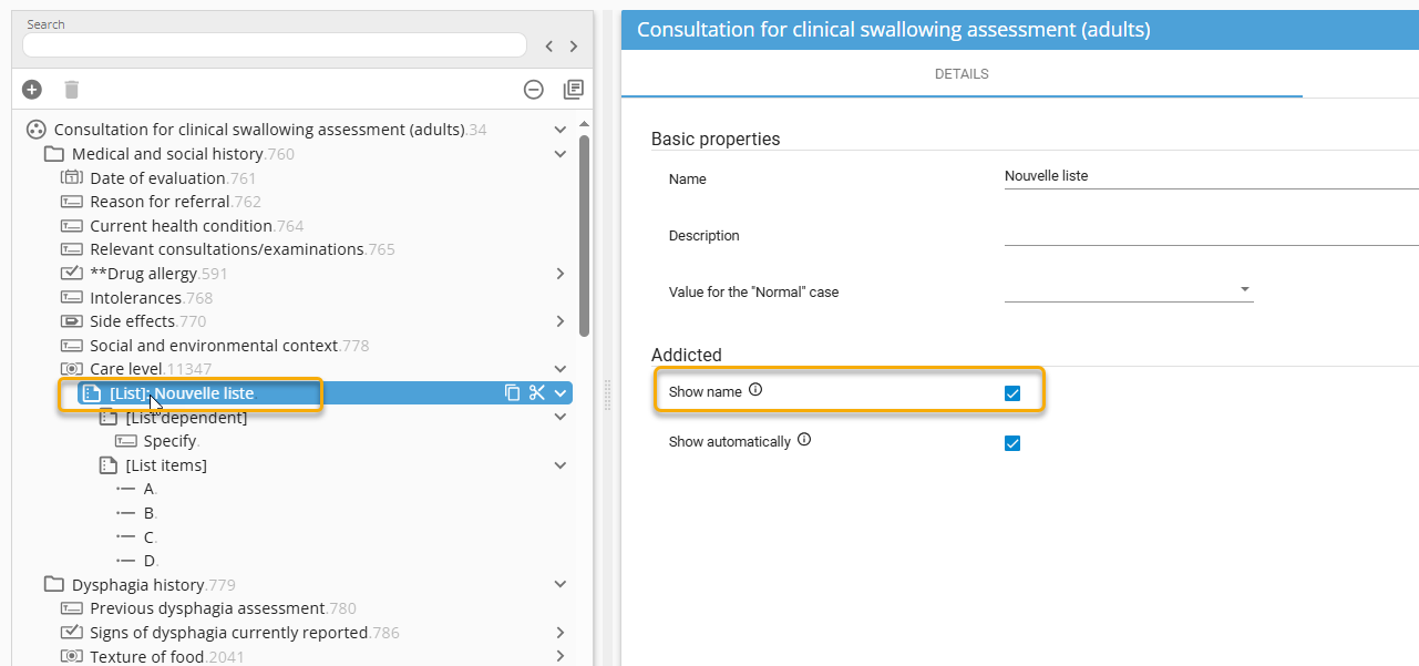 Allows the titles of the observations included in the list dependents to be displayed: