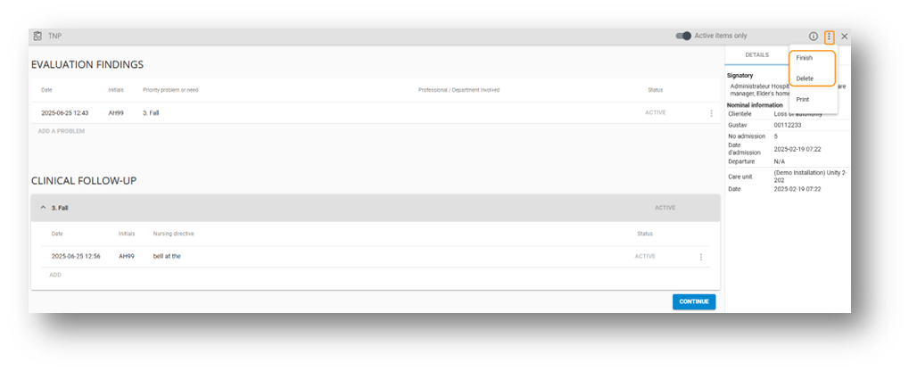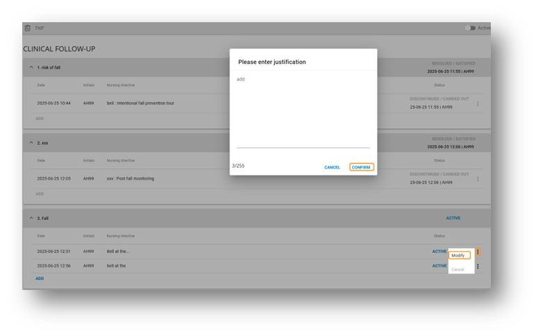 From the three dots, it is possible to correct a directive, and this action requires the user to provide a justification.