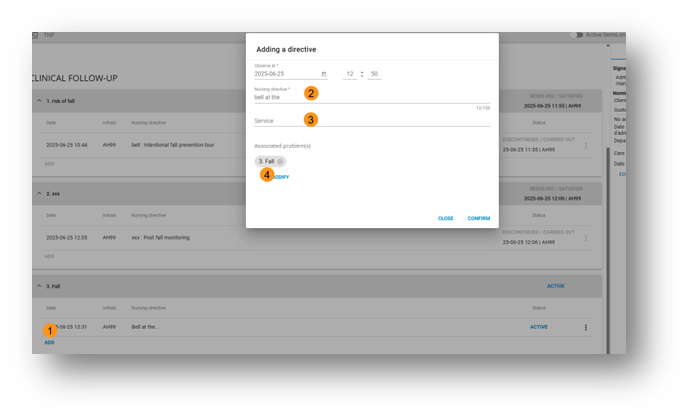 1. Click the “Add” button of the problem in the clinical follow-up section