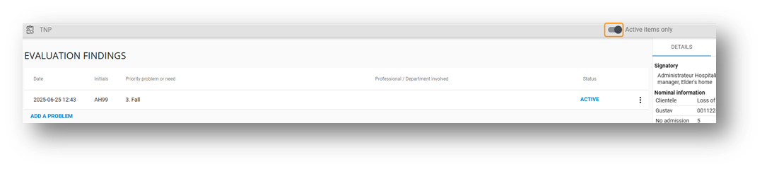 Changing a status to “Resolved/Satisfied” will automatically set the related directives' status to “Discontinued/Completed”, using the same date and time as the problem status update.