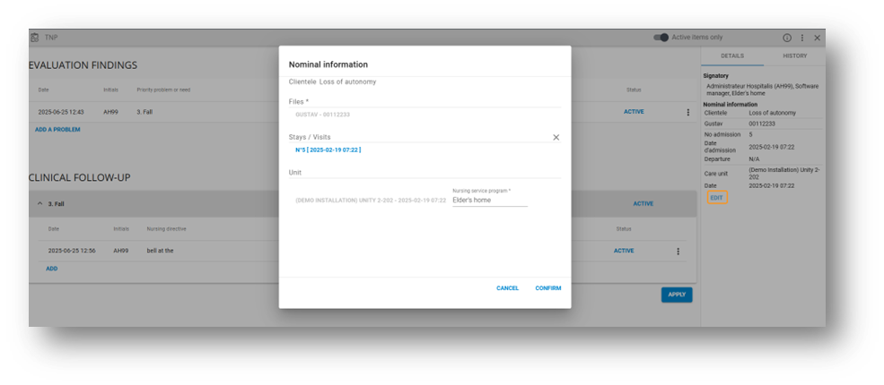 Adding a directive associated with a care/service activates a plan revision alert in the inter-shift report.