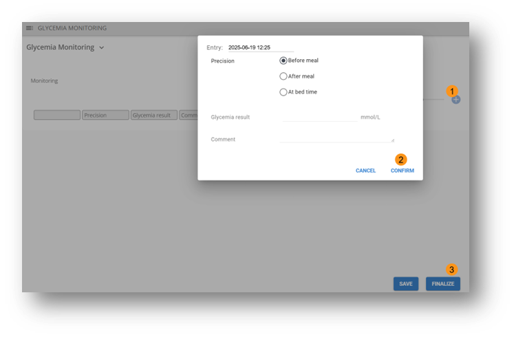 For clients with devices connected to Gustav, vital signs and blood glucose data will automatically be recorded in the user's follow-up record. This information can also be entered manually if needed.