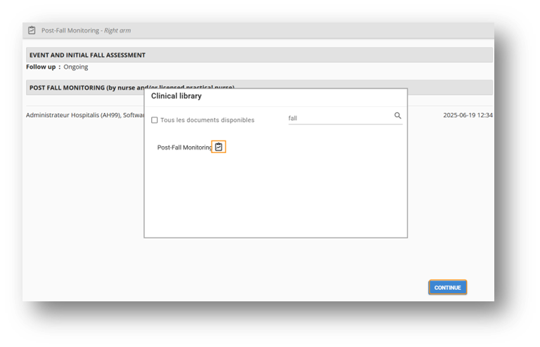 A visual indicator in the library shows that a follow-up has been started. Select the “Continue” button available when opening the document.