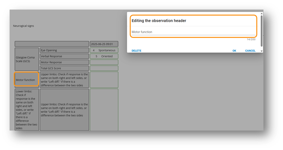 1. From the three dots on the grid, click the “Add Observation” button