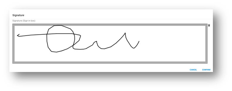 Using a finger, mouse, or stylus, it is possible to have a user sign a document if needed.