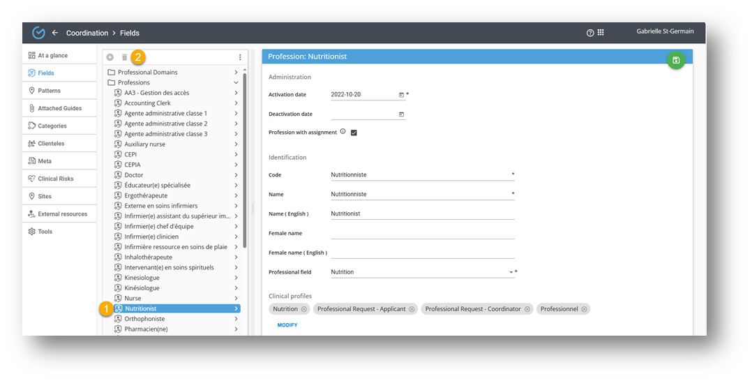 - Navigate to the Profession you want to deactivate.