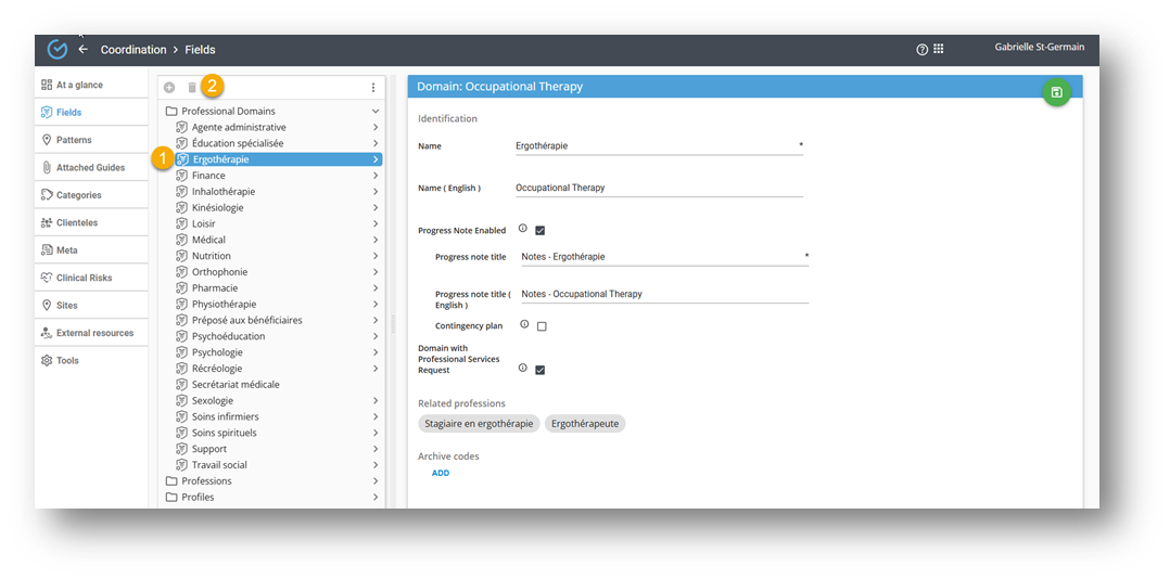 - Enter the name of the professional domain (English translation is optional).