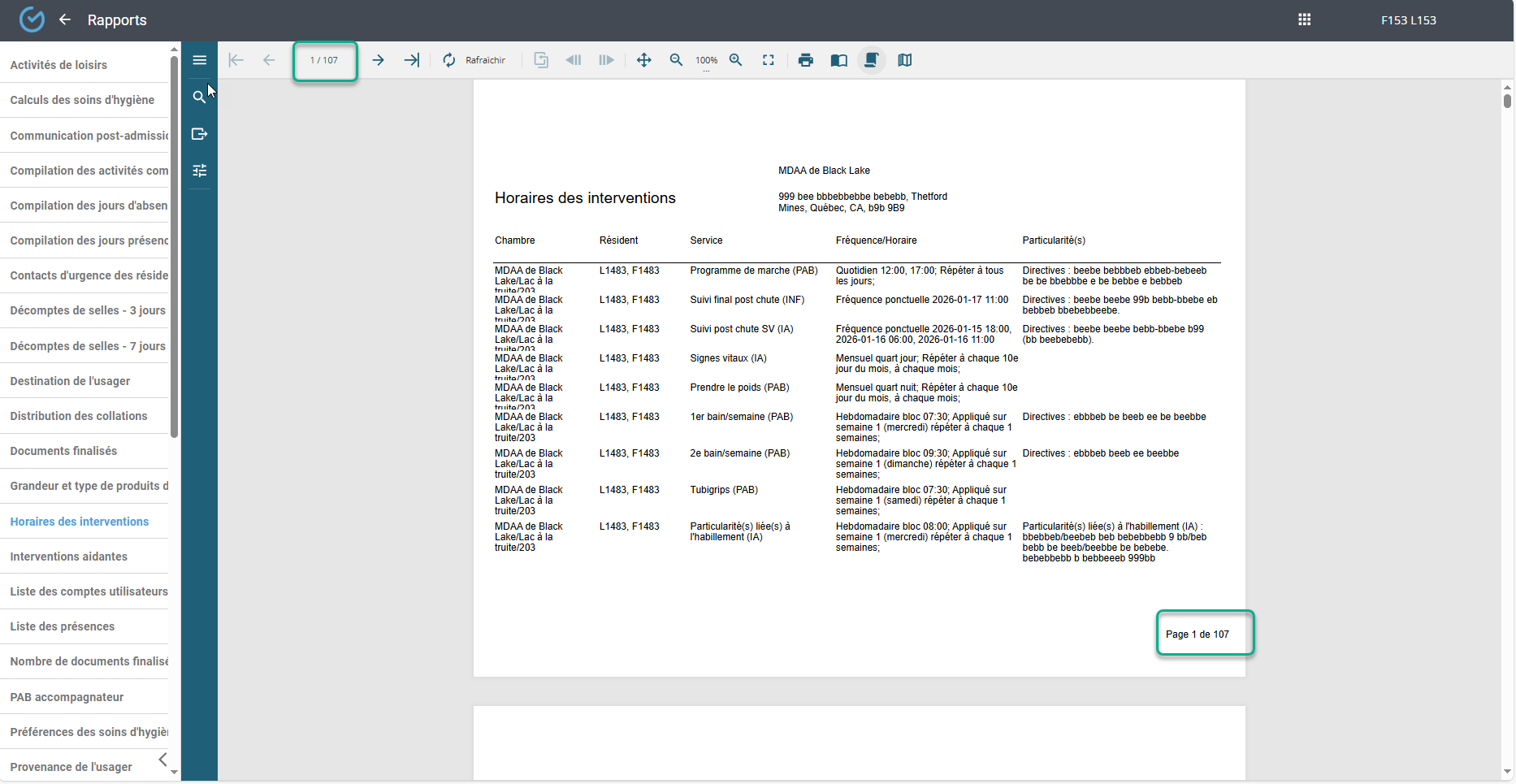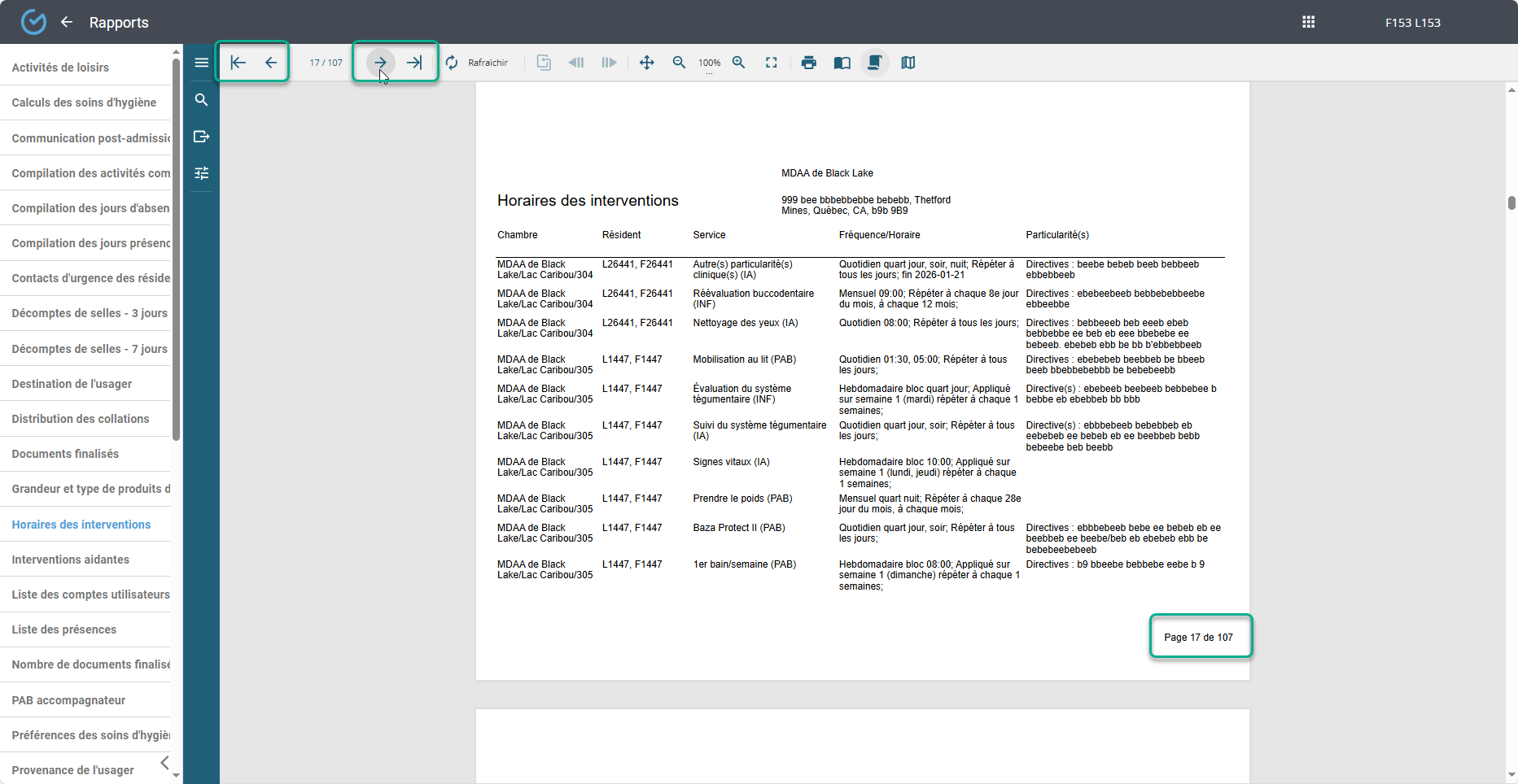 Utiliser les flèches pour basculer à la page suivante à la page précédente ou se rendre directement à la fin du rapport: