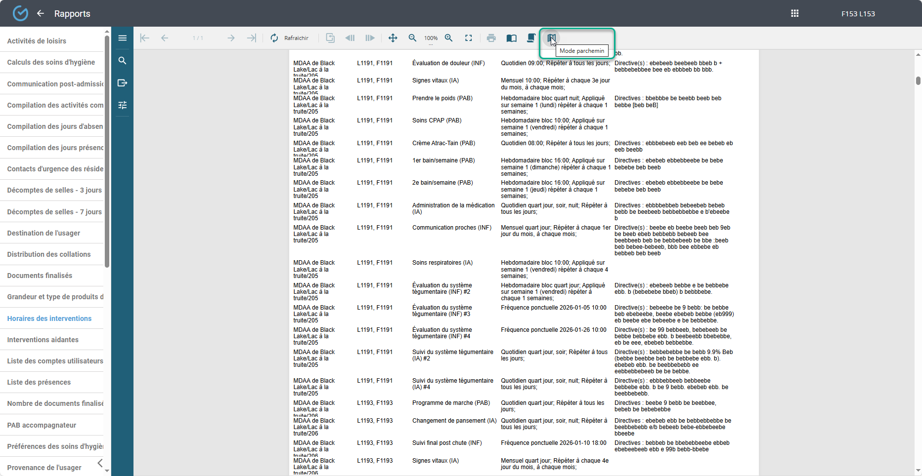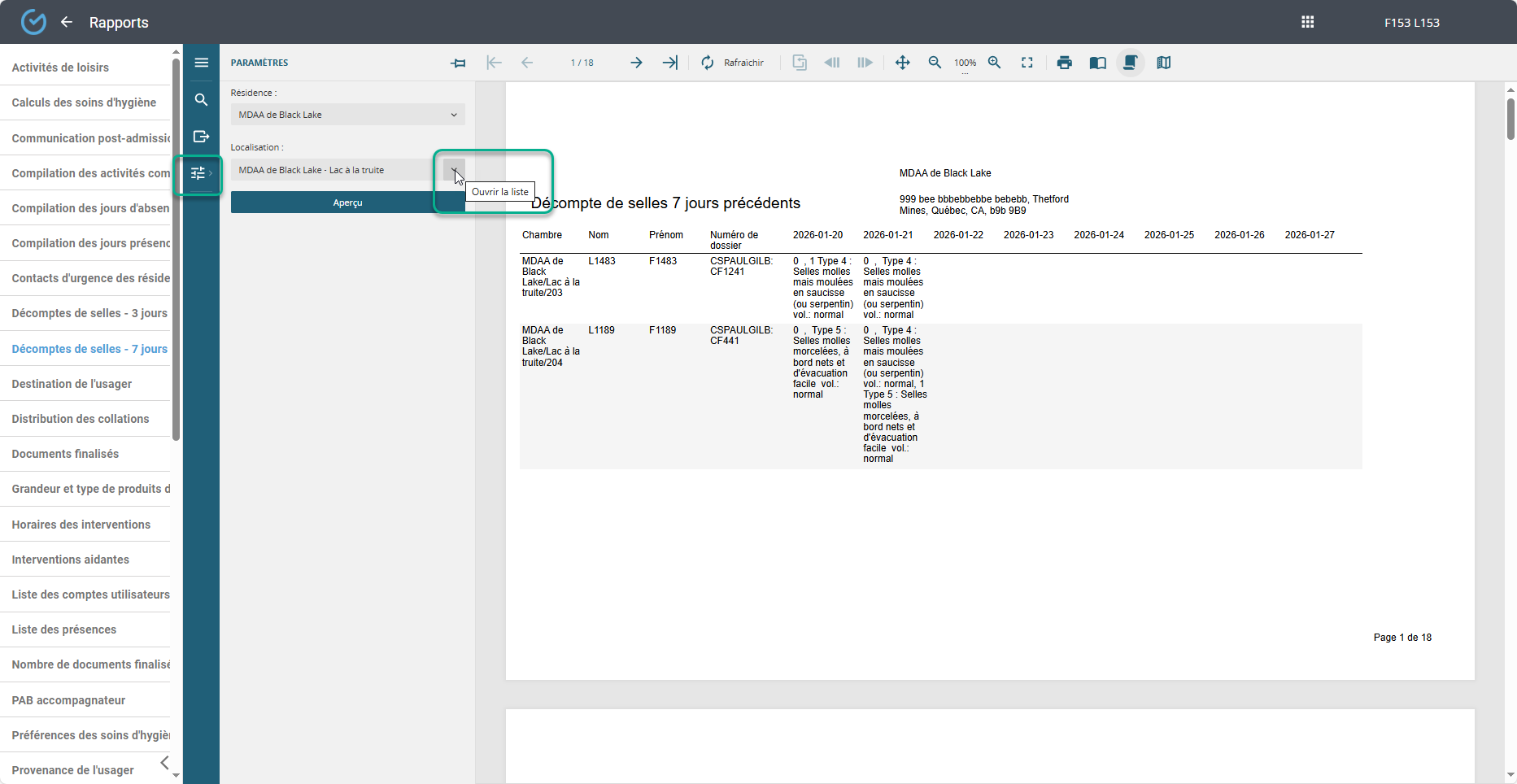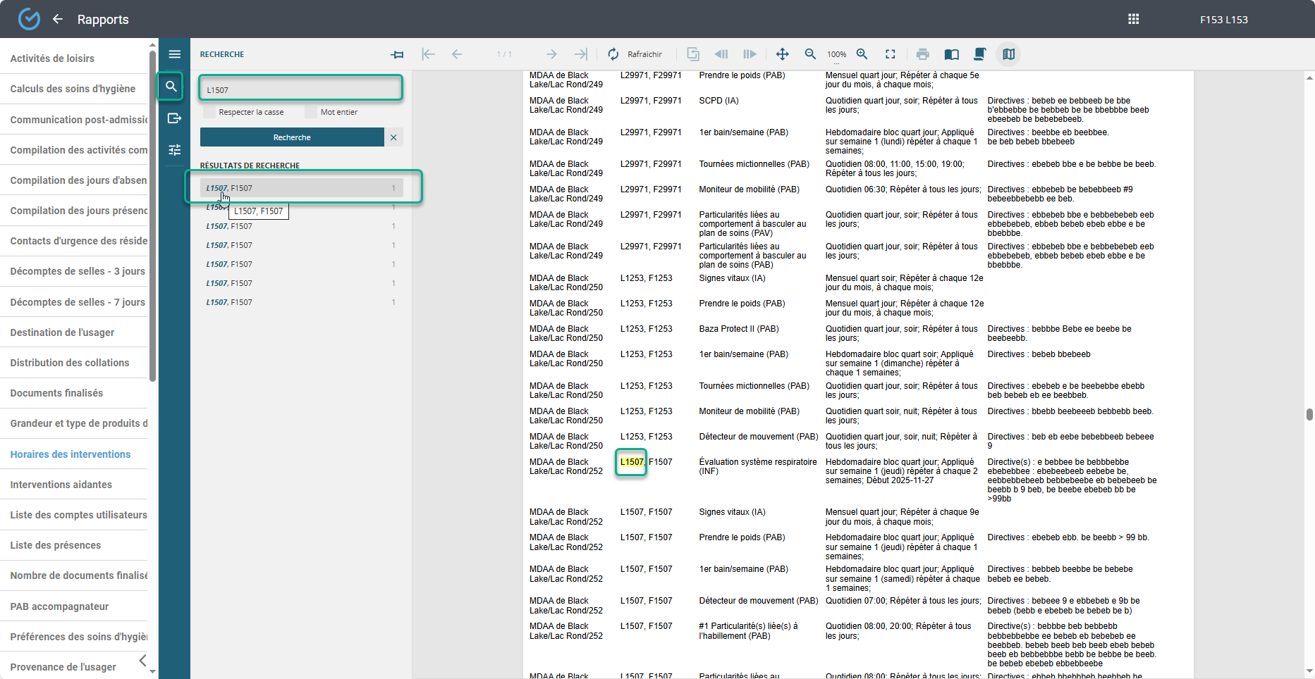 Utiliser l'outil ''Paramètres'' qui permet de filtrer par unité, étage, chambre: